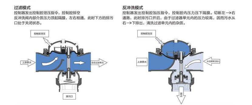 4.安裝簡單,無需外接氣源、液源,只需要控制系統(tǒng)提供電信號(hào),電動(dòng)執(zhí)行器即可操作球閥開與閉合,實(shí)現(xiàn)過濾器過濾與反洗功能。