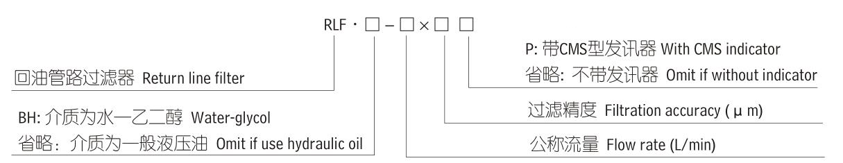 注:*為過(guò)濾精度 如過(guò)濾油液為一般液壓油,流量240L/min、精度10微米,配置發(fā)訊器 型號(hào)為RLF-240*10P,濾芯型號(hào)為SFX-240*10