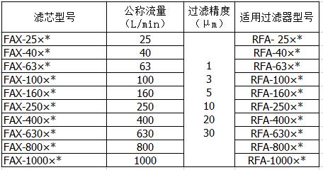 相關(guān)濾芯型號(hào)