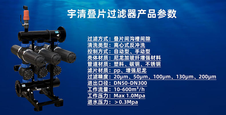 2、疊片過(guò)濾器在無(wú)安裝位置限制時(shí),可以隨意增加過(guò)濾器的數(shù)量以獲取更大的流量,如果安裝位置有限又想獲取更大流量,建議選用雙體疊片過(guò)濾器。