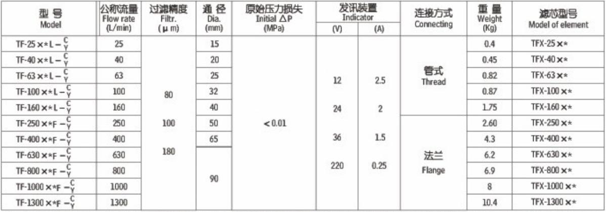 TF-630*80F-Y TF-630*100F-Y TF-630*100F-Y