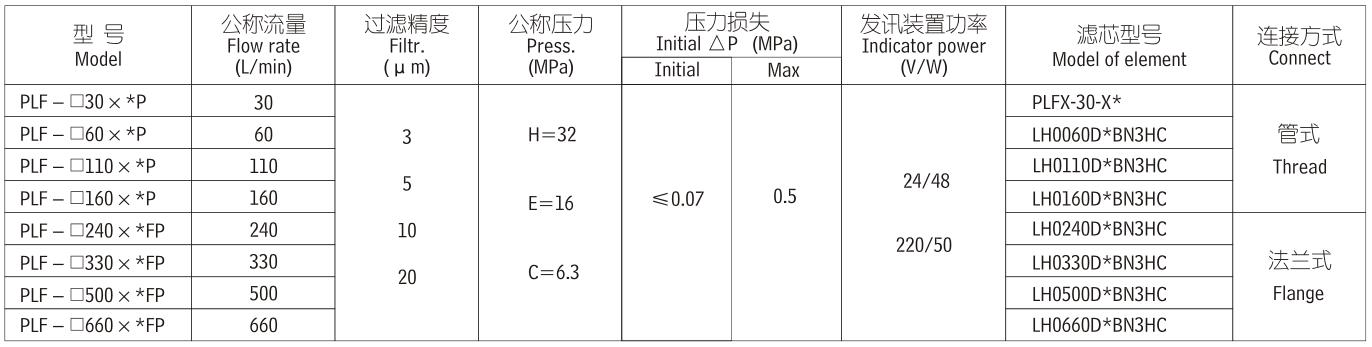注:*代表過濾精度 如流量240L/min 壓力32Mpa 精度5微米 帶發(fā)訊器